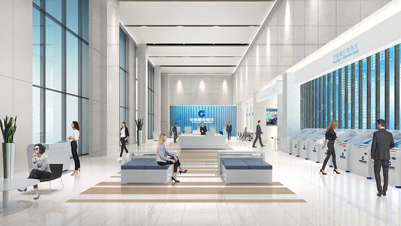 This coffee shop is located on the 15th floor of Yutong's headquarters sales building, covering about 1000 square meters. The 15th floor is the overseas sales department, mainly serving overseas customers. This coffee shop is where they relax and have informal conversations or meetings. Since many of their special customers come from oversea, the interior concept is inspired by the waves. Different shades of blue carpeting form layers of waves. As the ceiling height is limited, the ceiling is opened up to make it more spacious. The white GRG-made ceiling is like clouds floating in the sky. The curved edges are designed to make it look light. In addition to open seating, there are also meeting and semi-closed spaces with varying degrees of privacy. They are naturally organized along the "waves" and welcome every customer. This space conveys Yutong's open business philosophy to the global market to a certain extent.